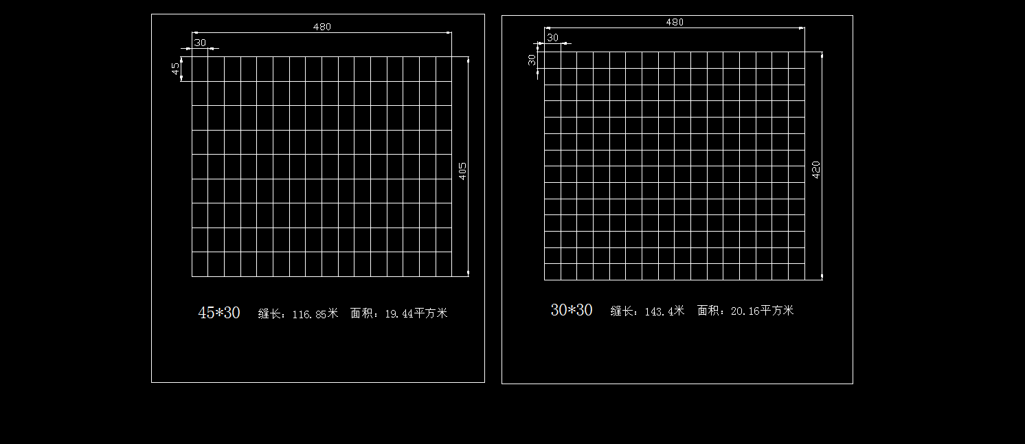 3、下图以450/300,300/300瓷砖为例(单位:厘米、米、平方米)