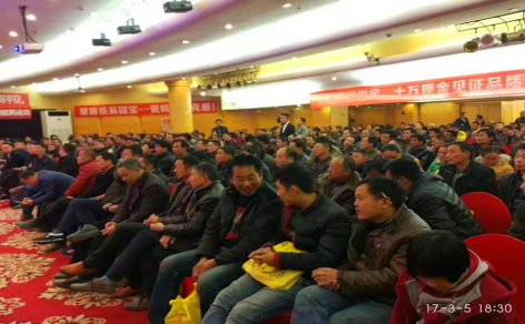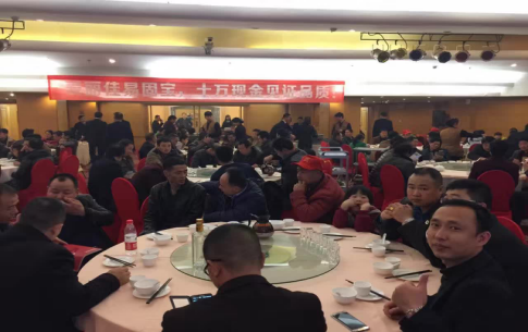 下午五时,盛况空前的爱丽佳产品质量鉴定会暨南阳工长答谢会在金凯悦酒店四楼会议厅如期召开。来自南阳建材行业的逾300名工长应邀出席了盛会。爱丽佳的形象代言人——一只活泼可爱的小燕子在门口迎接着各位朋友的到来,会议筹备组精心为客人们准备了矿泉水、衣服、帽子、宣传册等小礼物,让大家都收获到了意外的惊喜。高悬的多幅标语把会场的气氛烘托得喜庆而热烈。