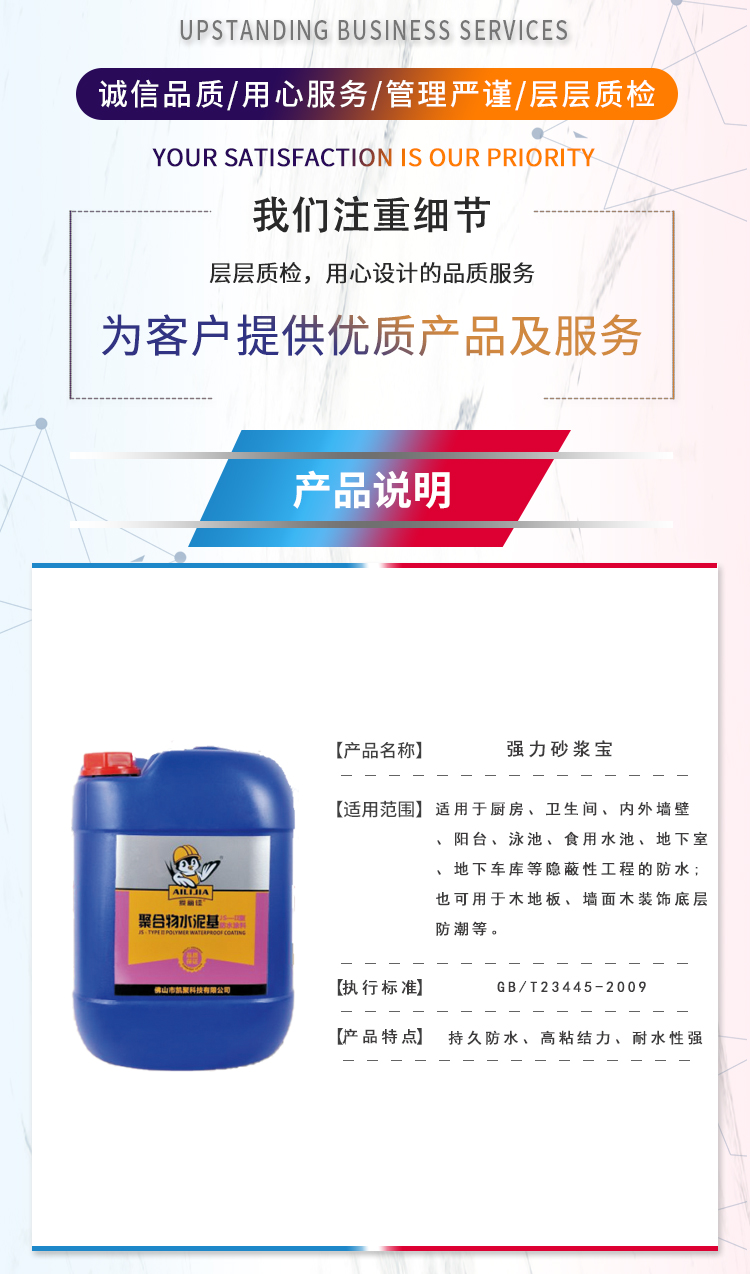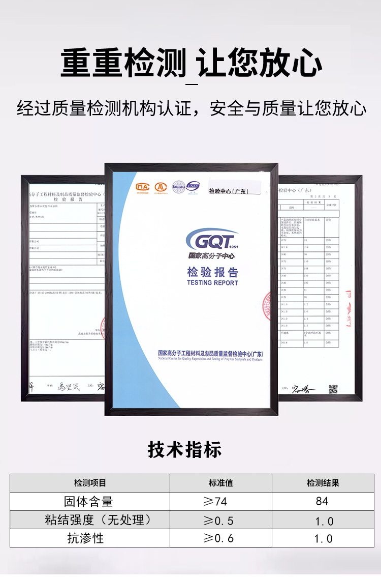 产品特点:▲持久防水▲高粘结力▲耐水性强