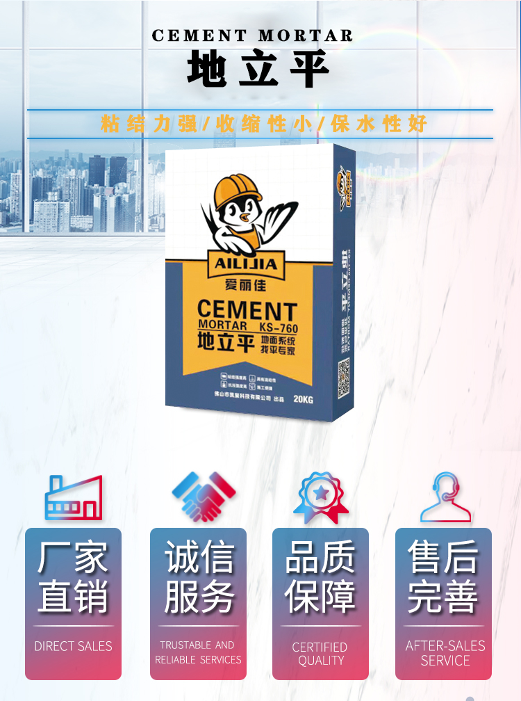 爱丽佳地立平地面系统找平砂浆是由优质特种水泥、精细骨料及多种添加剂组成。流动性好,施工方便环保无毒,替代传统水泥砂浆做地面找平新材料。